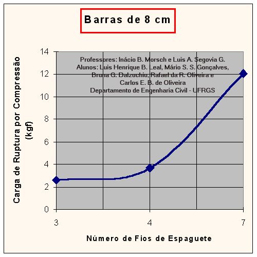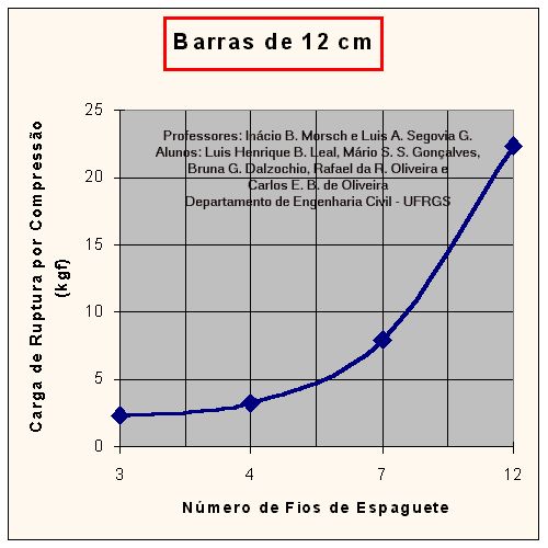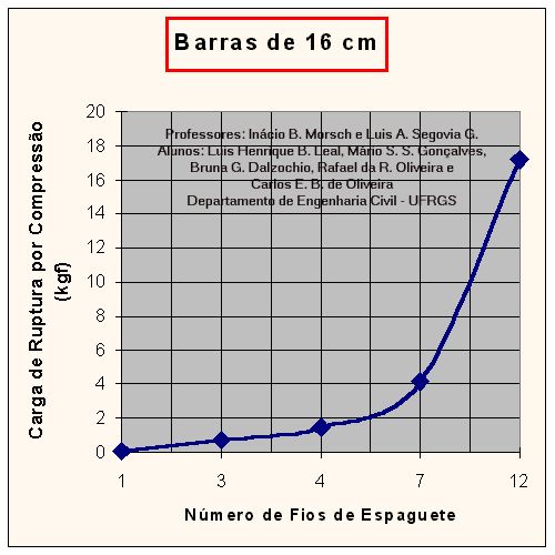 Curvas de Carga de Ruptura por Compressão x Número de Fios de Espaguete da Barra, para barras com diferentes comprimentos