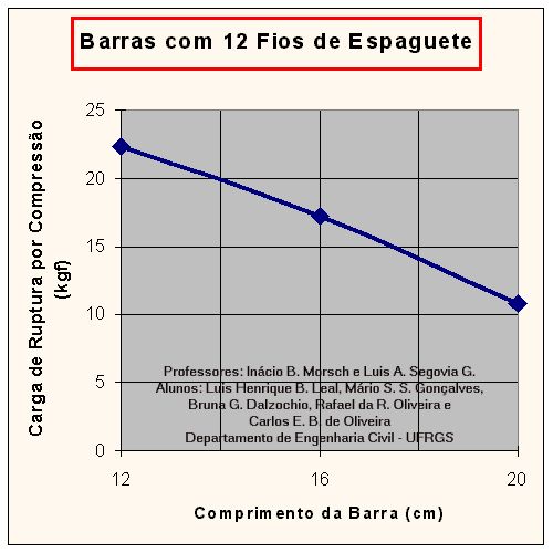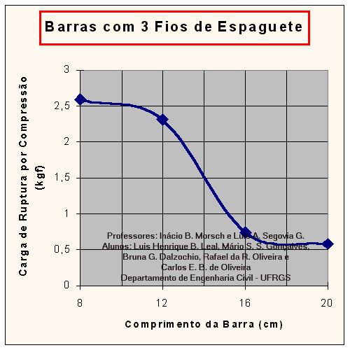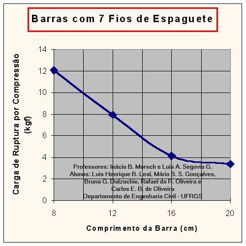 Curvas de Carga de Ruptura por Compressão x Comprimento da Barra, para barras formadas com diferentes números de fios de espaguete