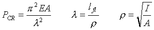 Onde PCR é o Esforço Normal de compressão que a barra deve suportar, A é a área da seção transversal, l é o índice de esbeltez da barra, lfl é o comprimento de flambagem da barra, r é o raio de giração e I é o momento principal central de inércia da seção.
