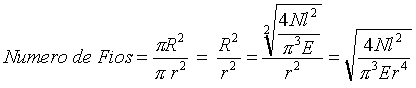 O número de fios pode ser obtido dividindo-se a área necessária pela área de cada fio.